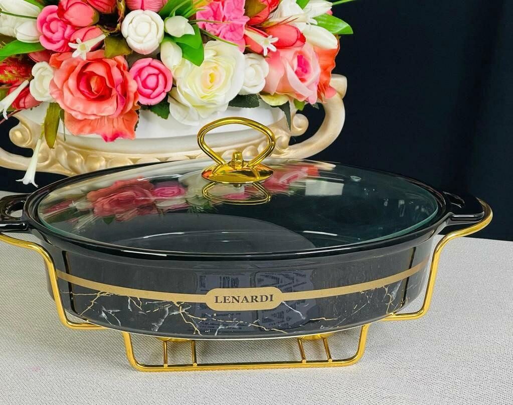 Lenardi 133-358 Овальный сервировочный мармит 28см с крышкой на подставке в под.уп.(х6)Фарфор