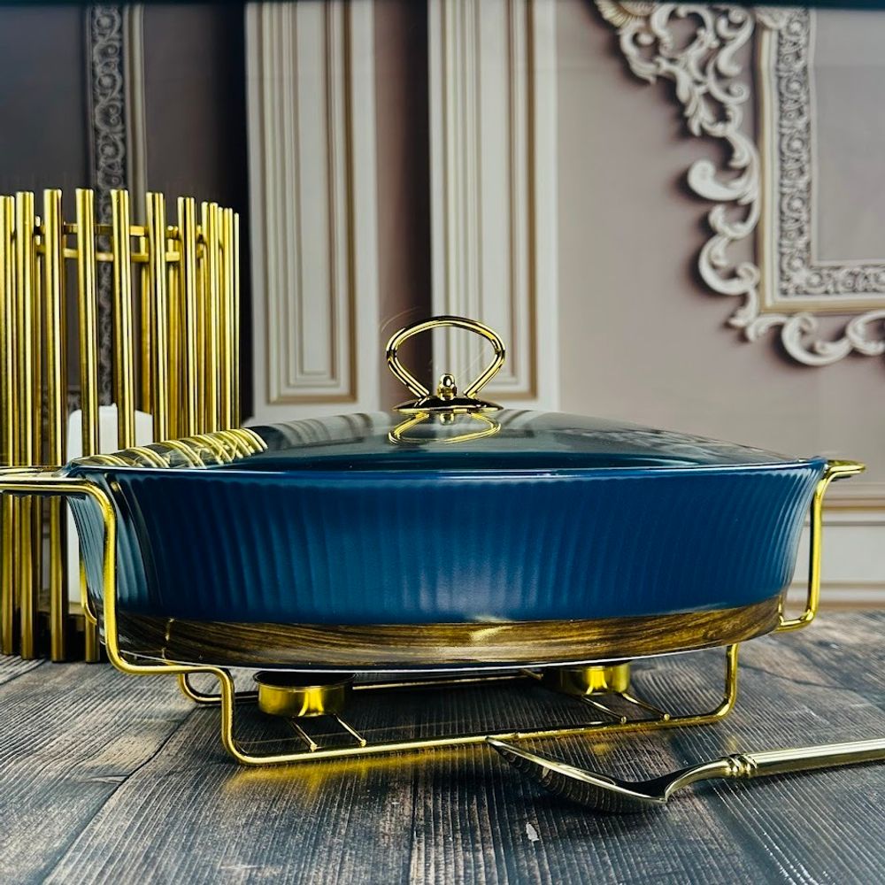 Lenardi 133-398 Овальный сервировочный мармит 38см(2,6л) с крышкой WOOD на подставке в под.уп.(х4)Фарфор