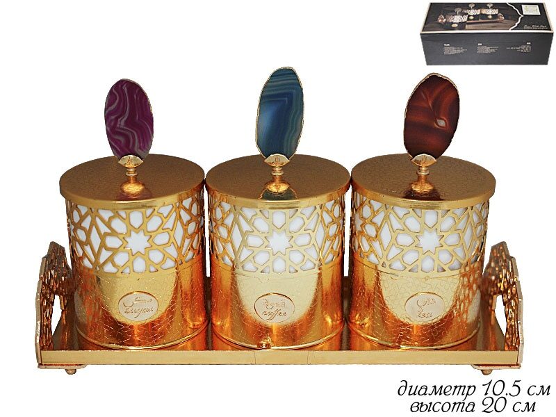 Lenardi 134-016 Набор из 3 банок с крышками на подставке в под.уп.(х9)Позолоченный металл