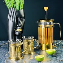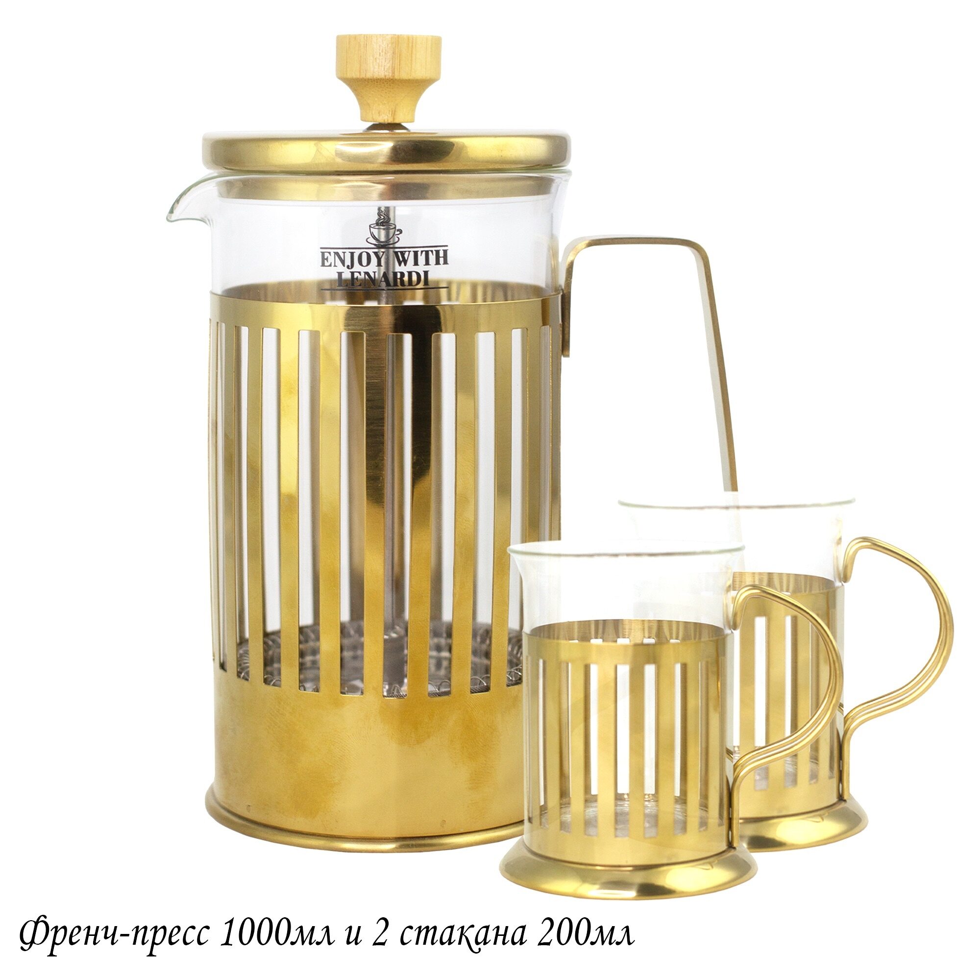 Френч-пресс со стеклянной колбой. Прочная колба из боросиликатного стекла устойчива к перепадам температуры, а металлический каркас надежно фиксирует ее.