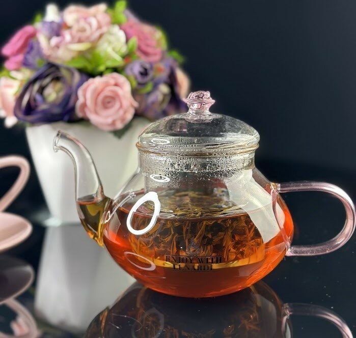 Прозрачный заварник со стеклянной колбой-фильтром.С помощью колбы напиток фильтруется от мелких чаинок и листьев.
