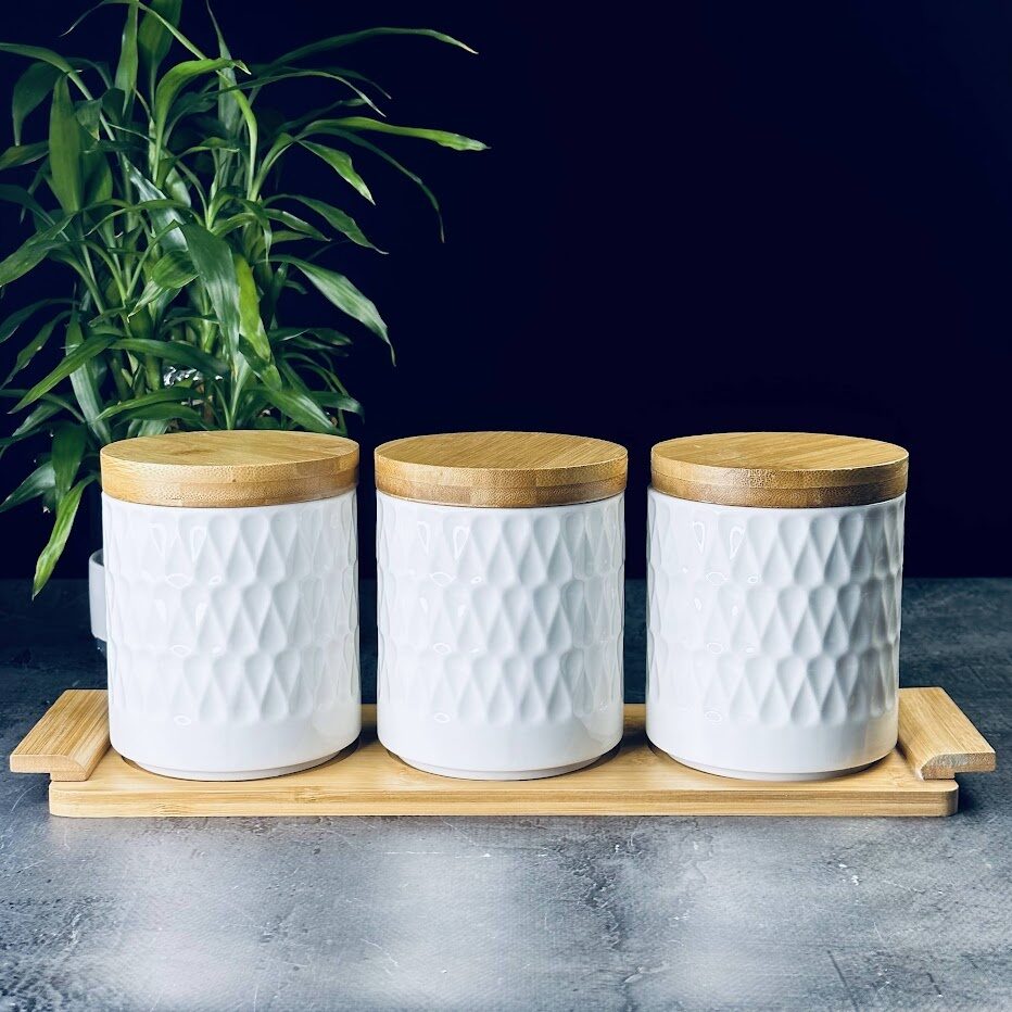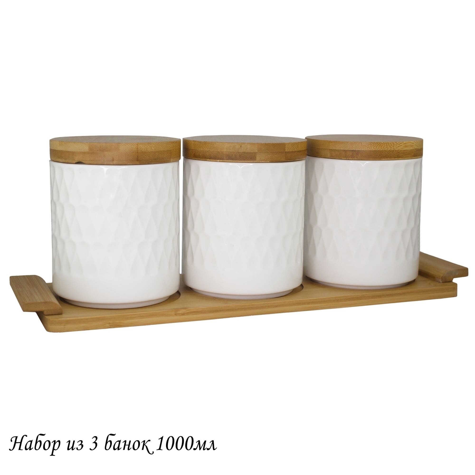 Lenardi 140-032 Набор из 3 банок 1000мл BAMBOO на подставке в под.уп.(х8)Фарфор,бамбук