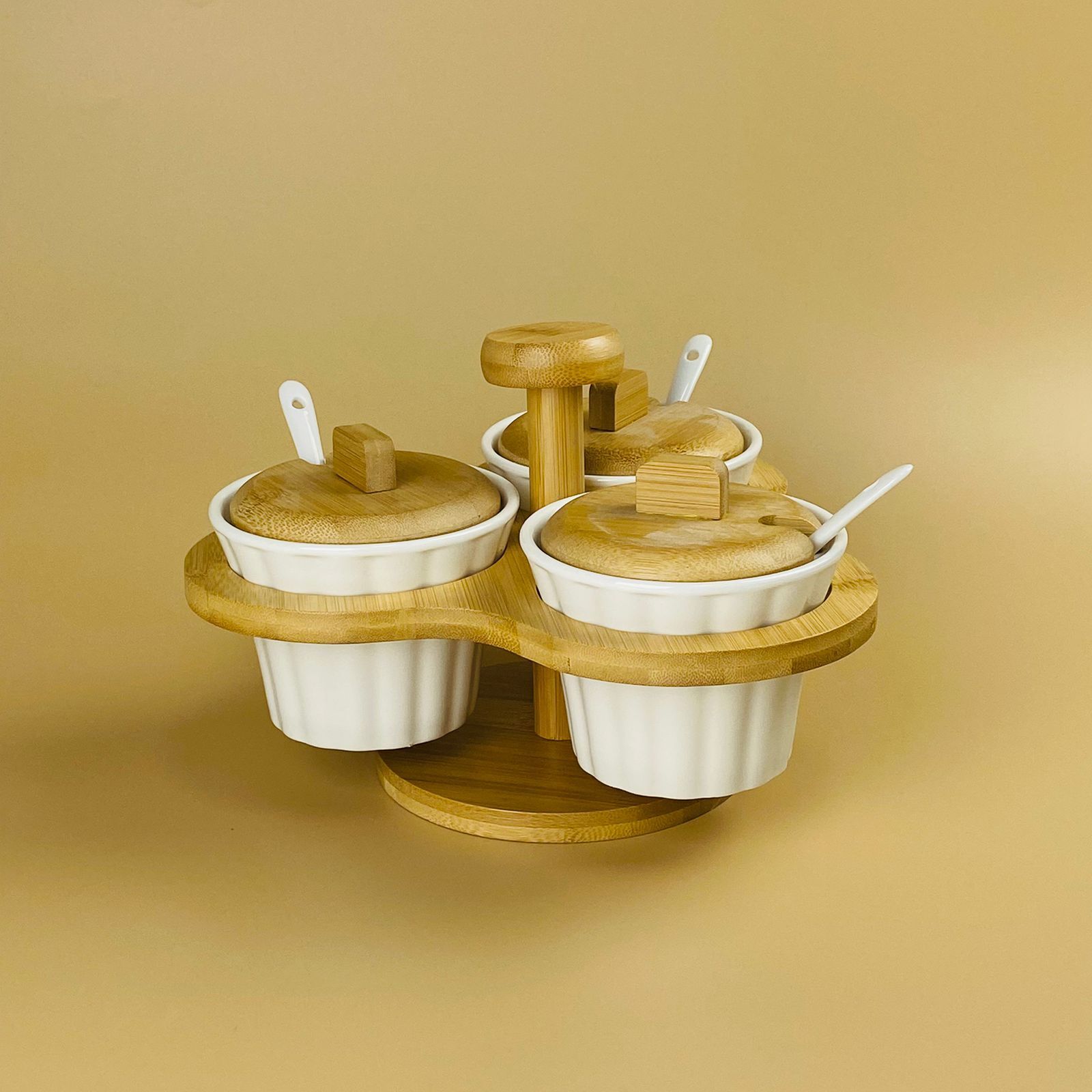 Lenardi 140-089 Набор из 3 банок 210мл для специй с ложками на подставке BAMBOO в под.уп.(х12)