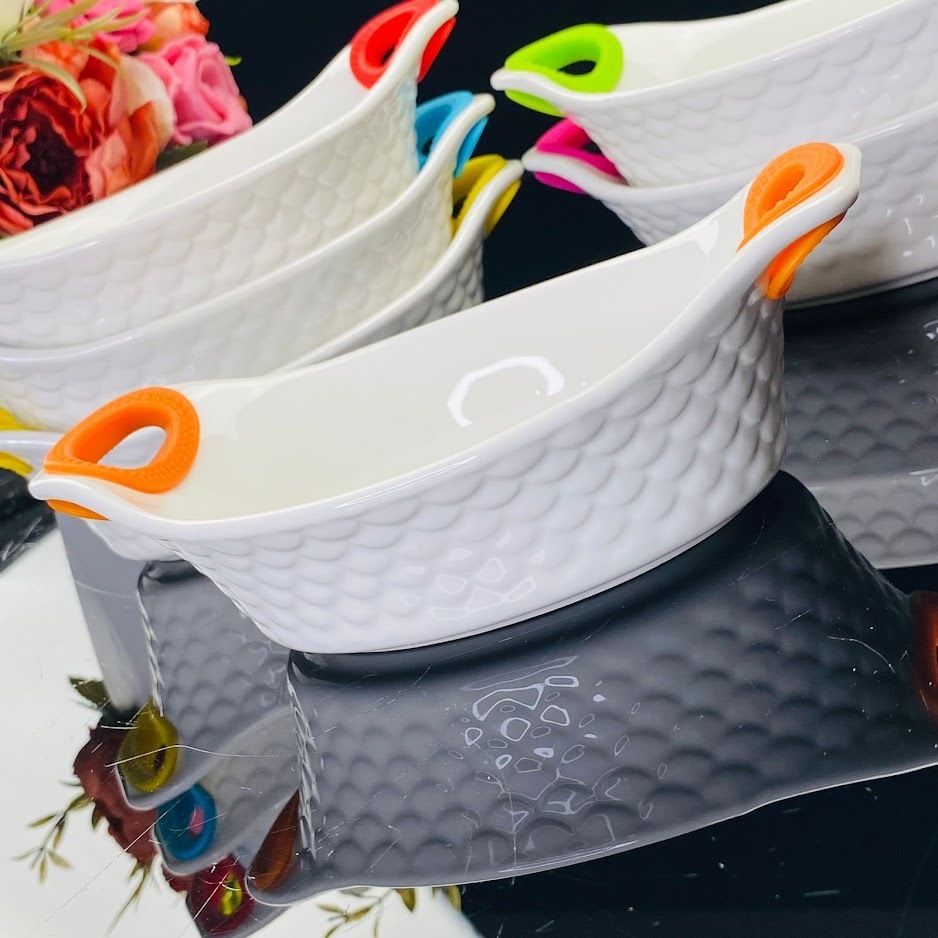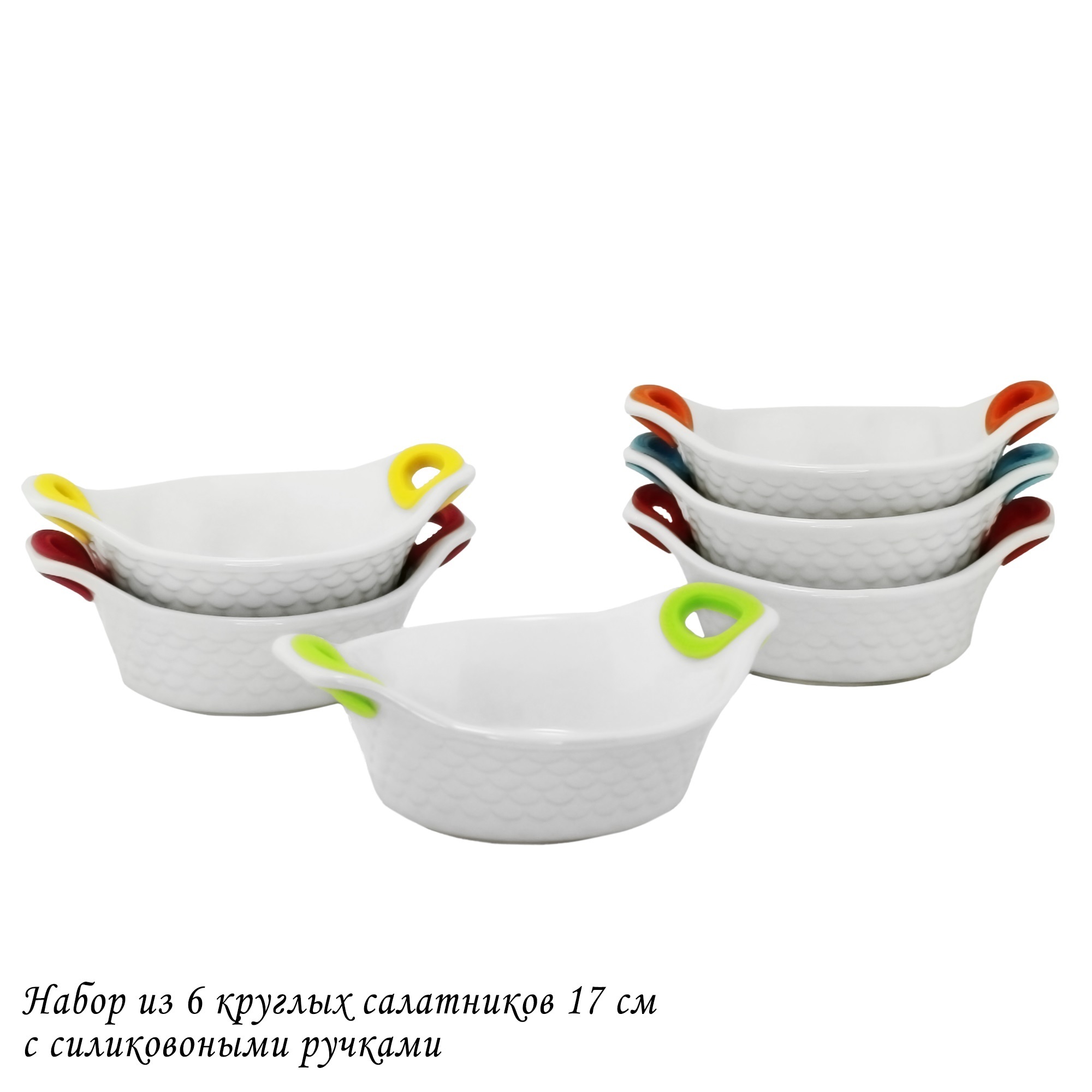 Lenardi 142-031 Набор из 6 овальных салатников 17см с силикон.ручками в под.уп.(х6)Фарфор