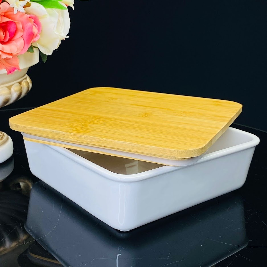 Lenardi 142-087 Квадратное блюдо для запекания 15см с бамбук.крышкой в под.уп.(х16)Фарфор