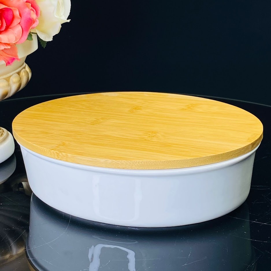 Lenardi 142-091 Овальное блюдо для запекания 19см с бамбук.крышкой в под.уп.(х16)Фарфор