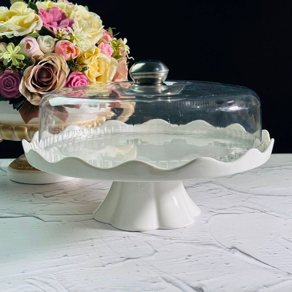Lenardi 142-108 Тортовница 30см на ножке с крышкой в под.уп.(х6)Фарфор