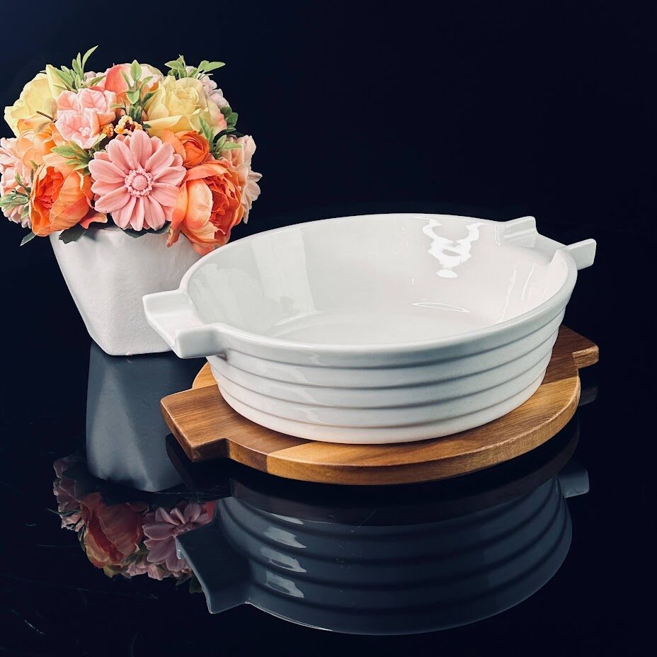 Lenardi 142-118 Круглое блюдо для запекания 24см с дерев.крышкой/подставкой в под.уп.(х12)Фарфор