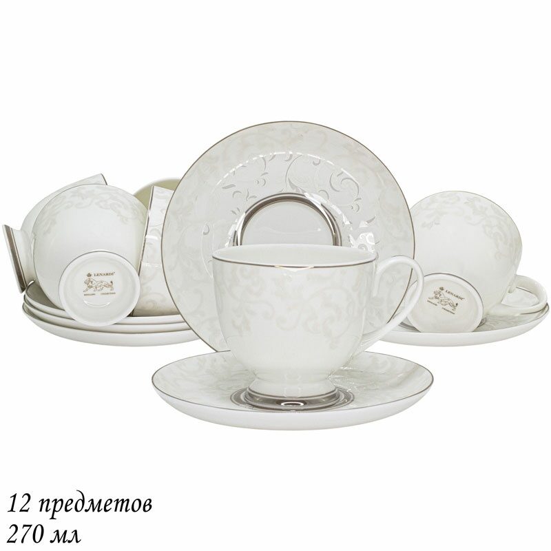 Lenardi 145-139 Чайный набор 12пр. СЕРЫЙ ШЕЛК в под.уп.(х10) Костяной фарфор