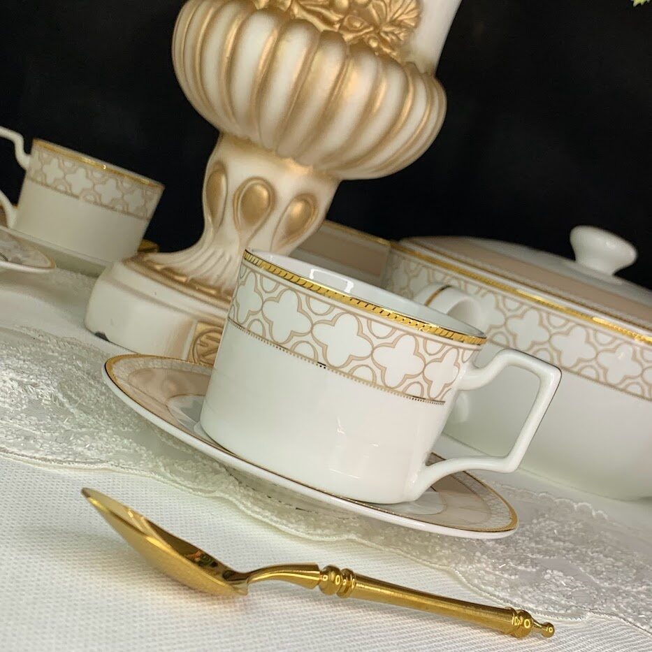 Коллекция ЖОЗЕФИНА изготовлена из тончайшего костяного фарфора. Посуду отличет пудрово-бежевый декор в сочетании с золотой окантовкой. Легкий, прозрачный и очень нежный.