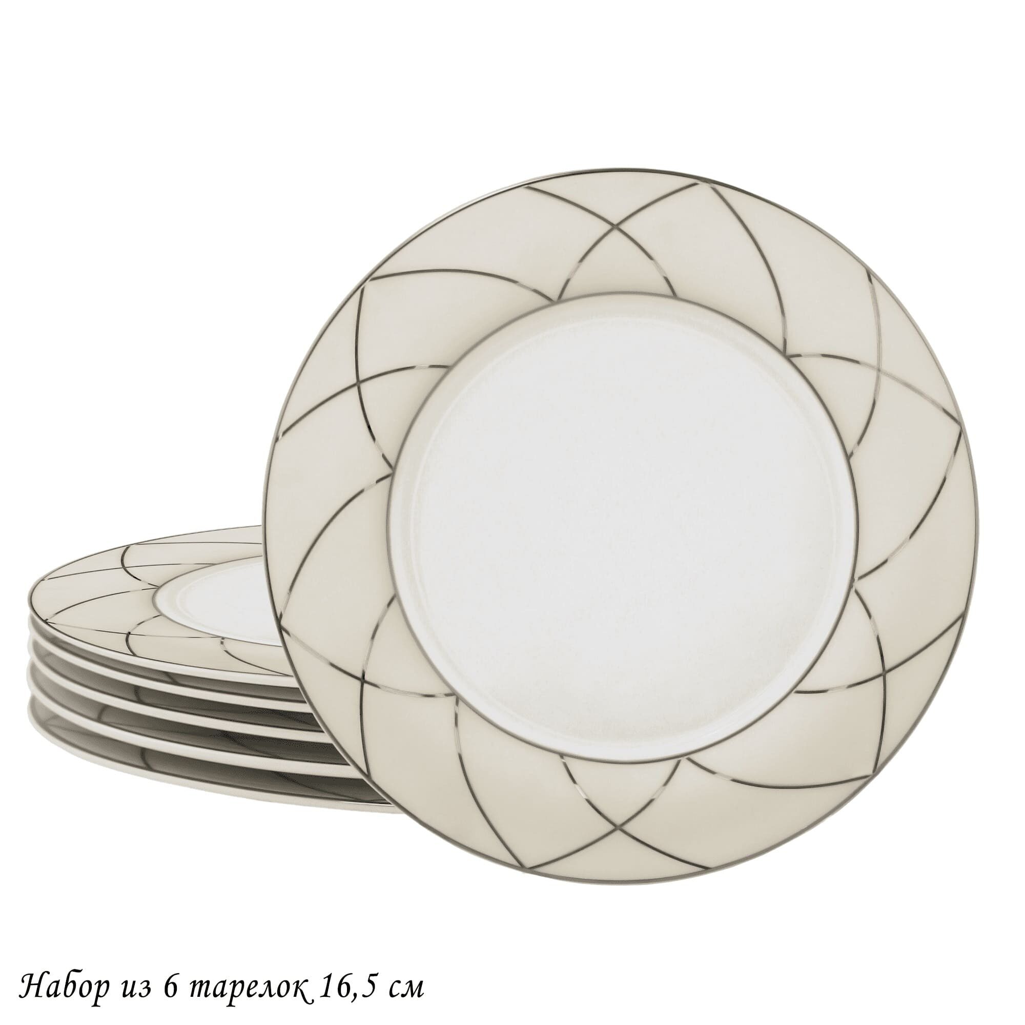 Lenardi 145-443 Набор из 6 тарелок 16,5см PANDORA CREAM в под.уп.(х20)Костяной фарфор