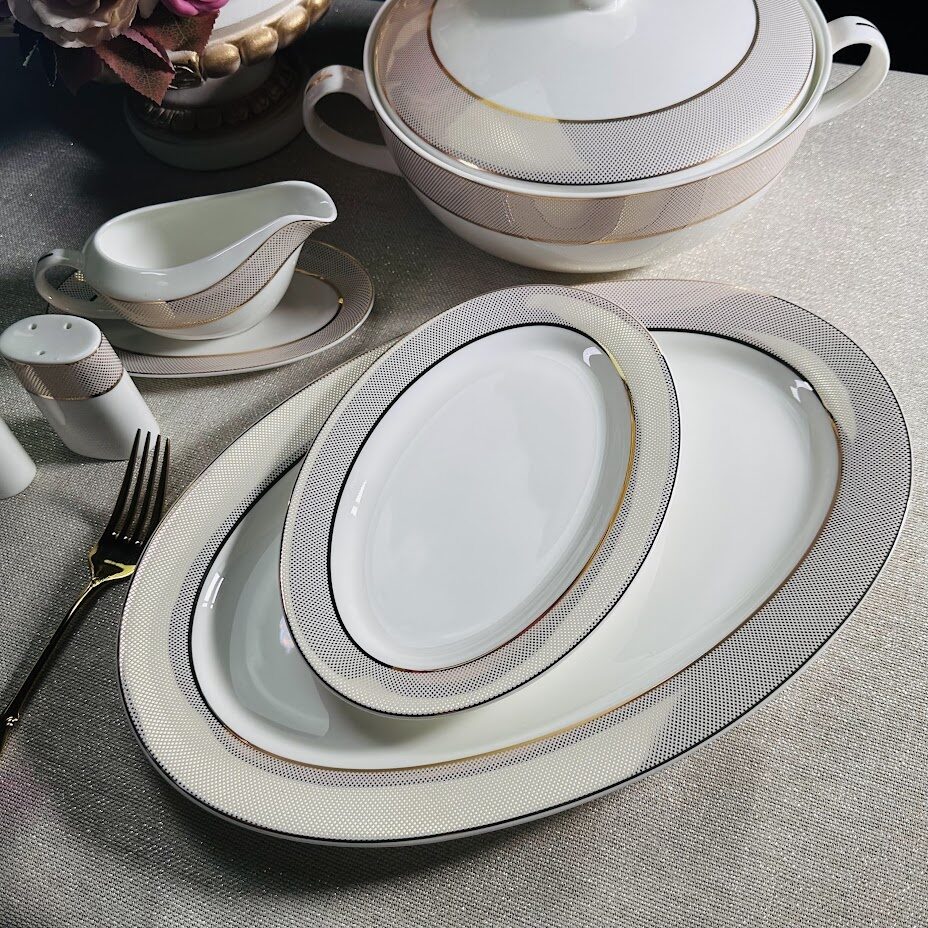Lenardi 145-507 Овальное блюдо 35,5см ЗОЛОТАЯ СИМФОНИЯ в под.уп.(х10)Костяной фарфор