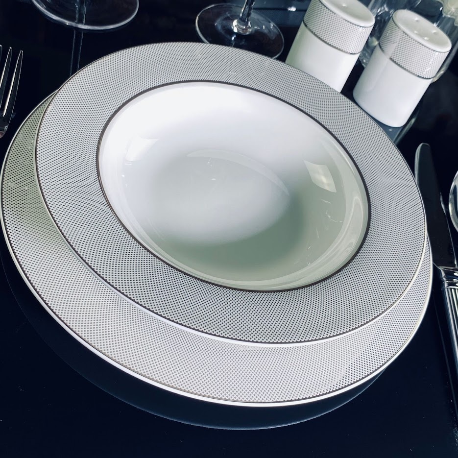 Коллекция СЕРЕБРЯНАЯ СИМФОНИЯ изготовлена из воздушного костяного фарфора. Декор выполнен в классическом серебряном рисунке. Коллекция состоит предметов сервировки, чайных и кофейных сервизов