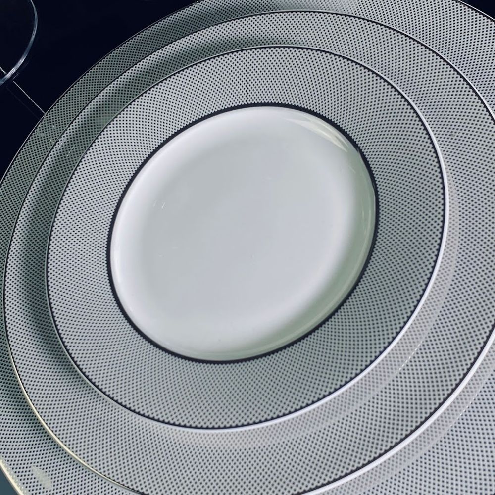 Коллекция СЕРЕБРЯНАЯ СИМФОНИЯ изготовлена из воздушного костяного фарфора. Декор выполнен в классическом серебряном рисунке. Коллекция состоит предметов сервировки, чайных и кофейных сервизов