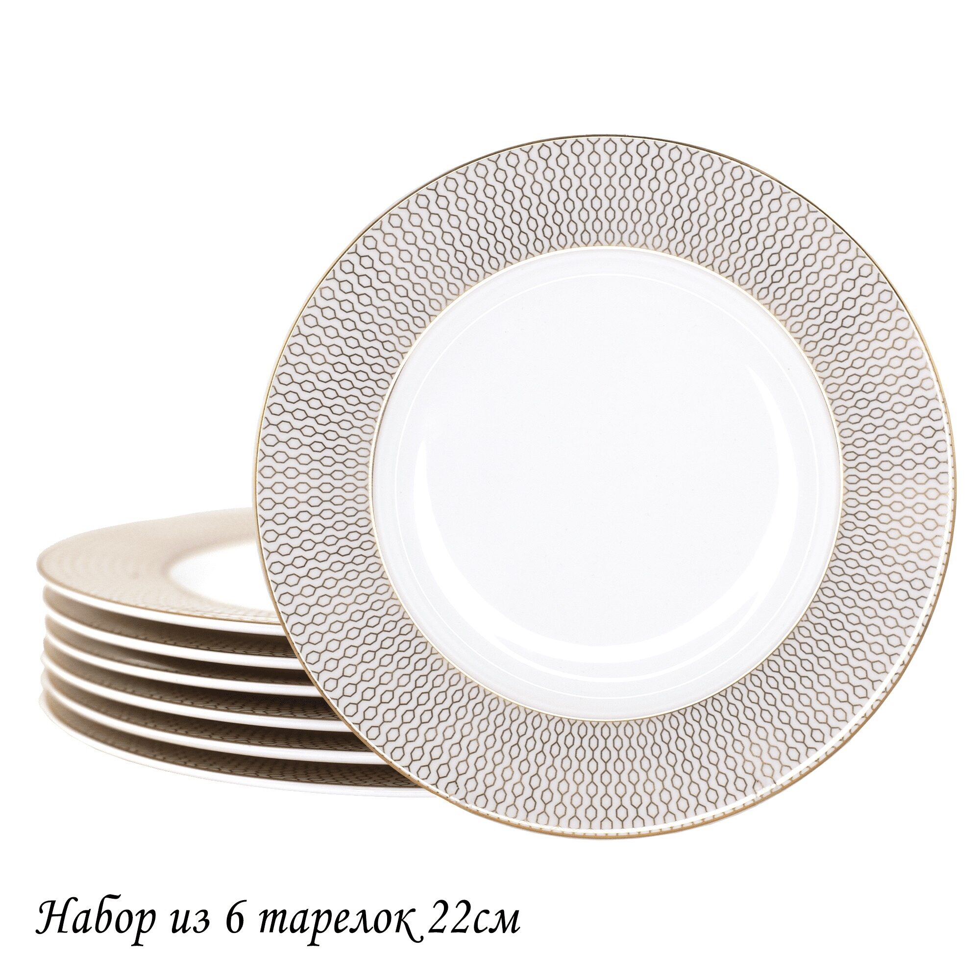 Lenardi 145-540 Набор из 6 тарелок 22см СЕВИЛЬЯ в под.уп.(х10)Костяной фарфор