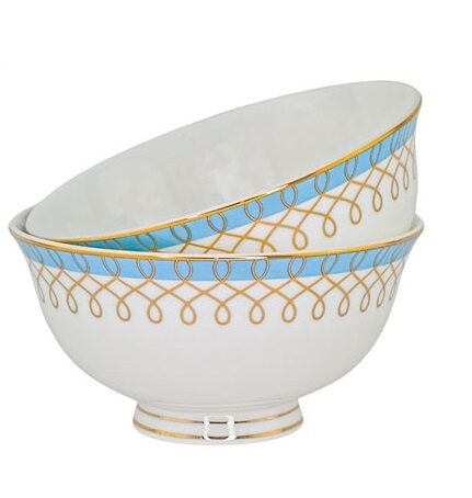 Коллекция ТИФФАНИ изготовлена из легкого костяного фарфора. В декоре мы совместили классические и современные техники. Узор на лазурно голубой деколи выполнен на одних изделиях золотом, на других белого цвета. Одни тарелки только с голубым узором, другие с голубой деколью на бортах. Эти комбинации делают коллекцию воздушной и легкой. Великолепное сочетание тонкого белоснежного костяного фарфора и лазурного декора. Коллекция состоит предметов сервировки, чайных и кофейных сервизов
