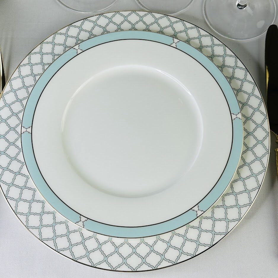 Изысканная коллекция ВЕРСАЛЬ изготовлена из полупрозрачного костяного фарфора. Изысканная палитра, сочетающая в себе нежные оттенки небесно-голубого цвета и золотого декора, очаровывает своей глубиной и игрой света. Изящные позолоченные края, словно лучи солнца, обрамляют тарелки. Утонченный рисунок из немецкого золота выполнен с искусной точностью. Коллекция состоит из предметов сервировка, обеденных, чайных и кофейных сервизов.