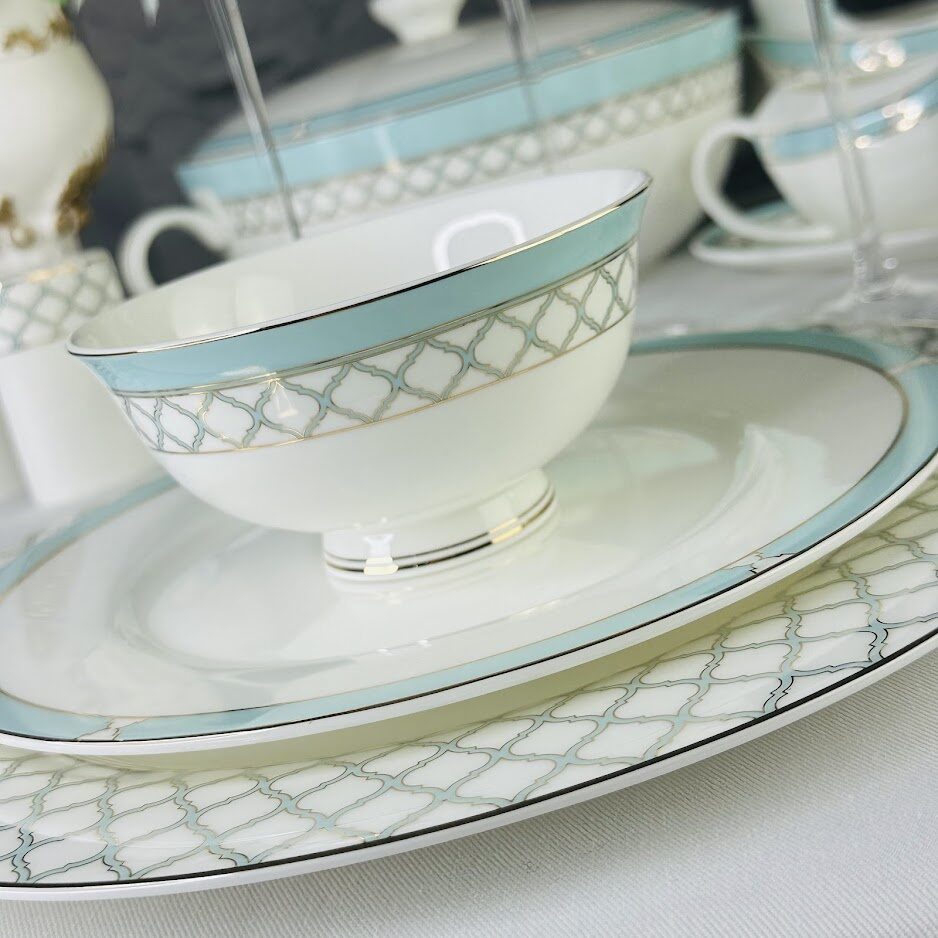 Изысканная коллекция ВЕРСАЛЬ изготовлена из полупрозрачного костяного фарфора. Изысканная палитра, сочетающая в себе нежные оттенки небесно-голубого цвета и золотого декора, очаровывает своей глубиной и игрой света. Изящные позолоченные края, словно лучи солнца, обрамляют тарелки. Утонченный рисунок из немецкого золота выполнен с искусной точностью. Коллекция состоит из предметов сервировка, обеденных, чайных и кофейных сервизов. Материал: фарфор Не рекомендуется использовать в микроволновой печи и мыть в посудомоечной машине, по причине возможного повреждения золотого декоративного покрытия.
