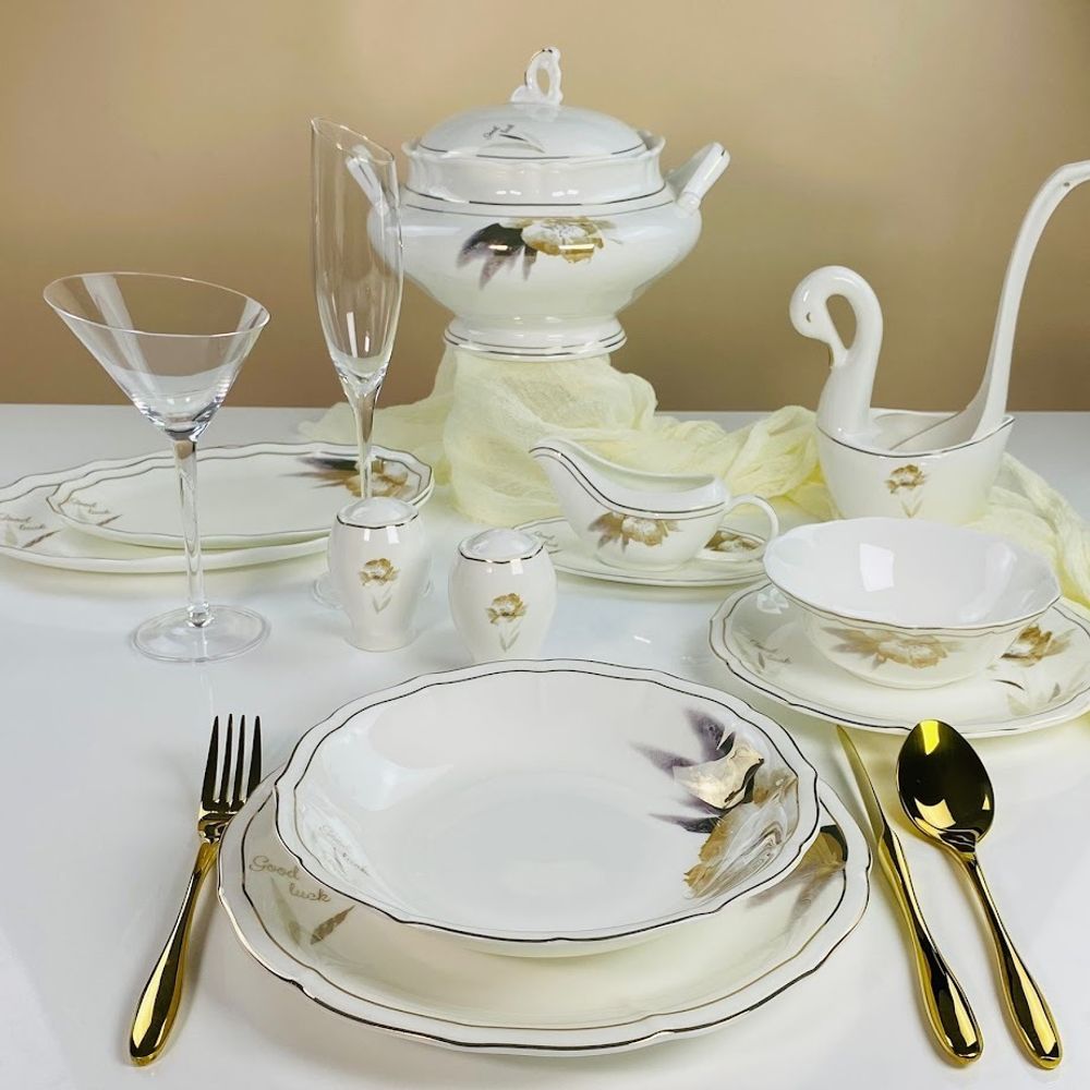 Не рекомендуется использовать в микроволновой печи и мыть в посудомоечной машине, по причине возможного повреждения золотого декоративного покрытия.