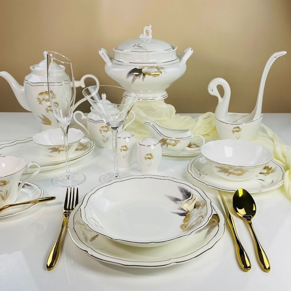 Не рекомендуется использовать в микроволновой печи и мыть в посудомоечной машине, по причине возможного повреждения золотого декоративного покрытия.
