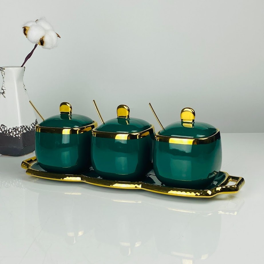 Lenardi 164-013 Набор из 3 банок 350мл с ложками на подставке в под.уп.(х9)Фарфор