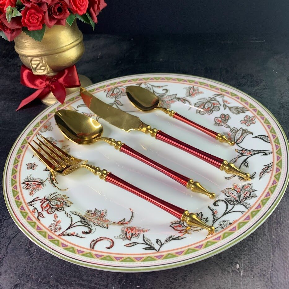Набор состоит из 24 предметов: 6 чайных ложек, 6 вилок, 6 ножей, 6 ложек.