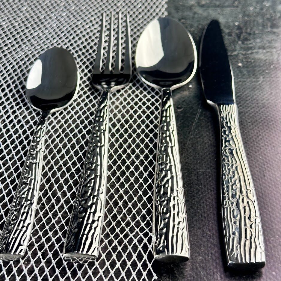 Столовые приборы изготовлены из высококачественной нержавеющей стали, устойчивы к ржавчине, прочны и долговечены Материал: нержавеющая сталь Наполнение набора из 24 предметов: 6 шт. вилки 6шт. ножи 6 шт. чайные ложки 6 шт. столовые ложки Не рекомендуется мыть в посудомоечной посуда во избежание повреждения декоративного покрытия.