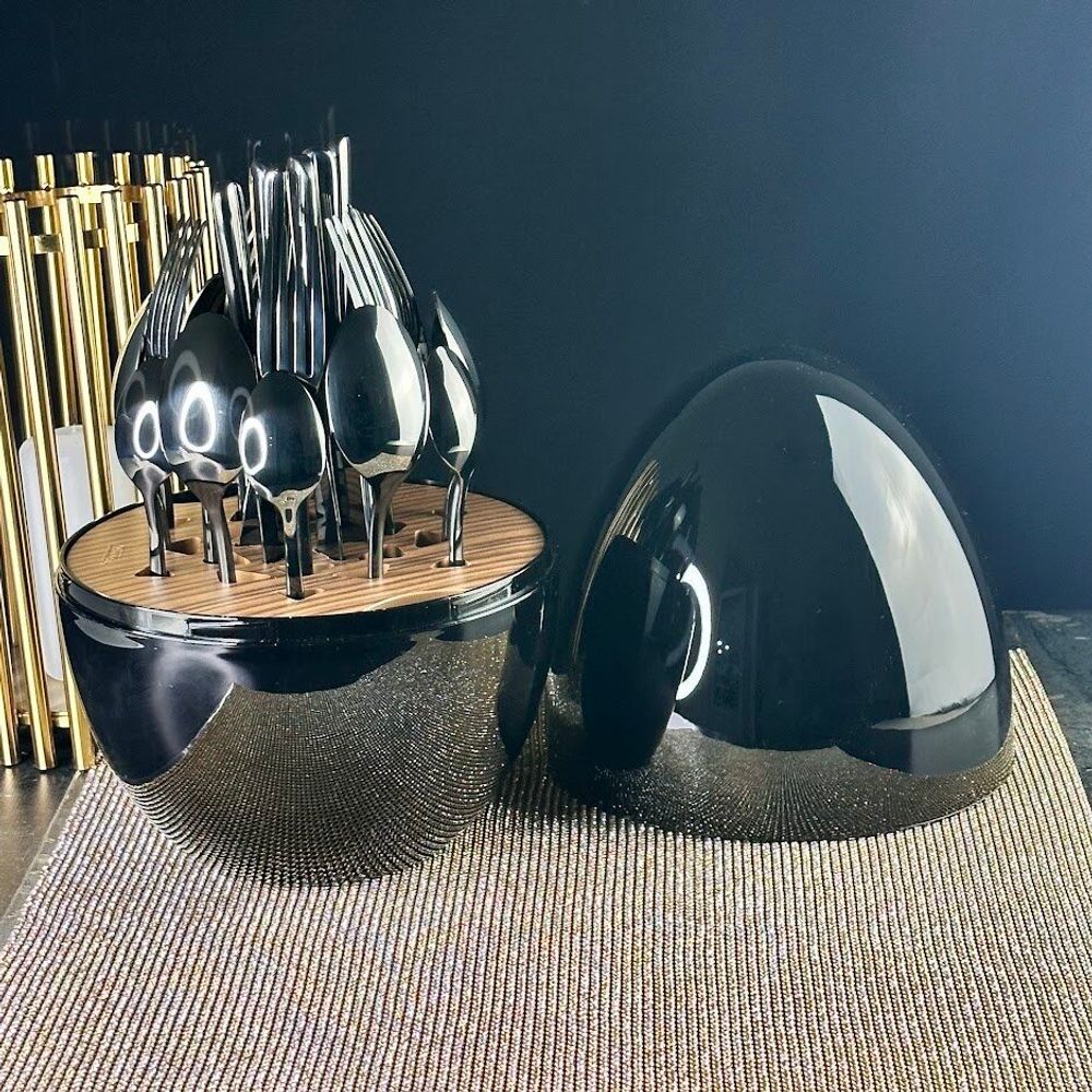 Столовые приборы изготовлены из высококачественной нержавеющей стали, устойчивы к ржавчине, прочны и долговечены Материал приборов: нержавеющая сталь Материал яйща: пластик Наполнение набора из 24 предметов: 6 шт. вилки 6шт. ножи 6 шт. чайные ложки 6 шт. столовые ложки Не рекомендуется мыть в посудомоечной посуда во избежание повреждения декоративного покрытия.