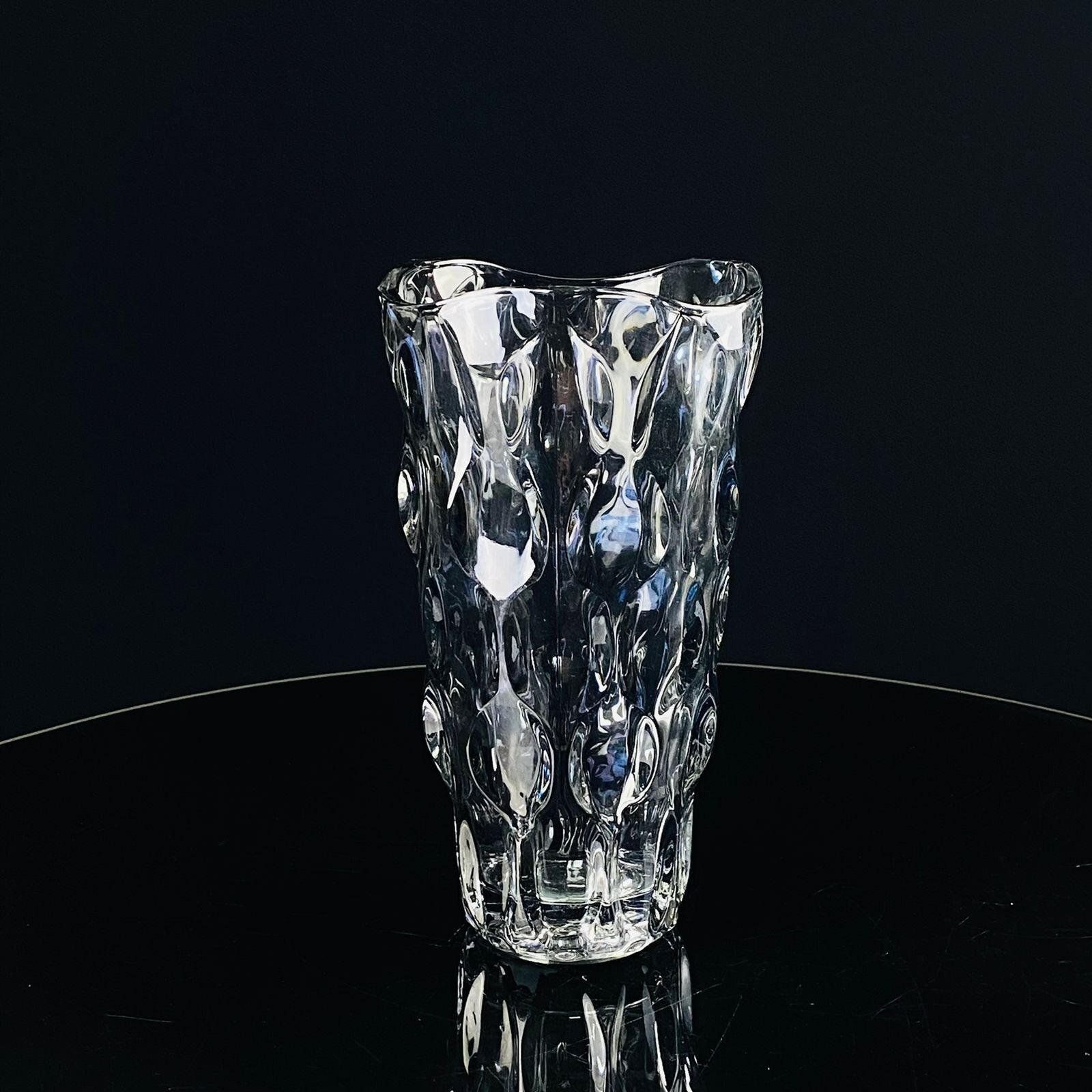 Оригинальная настольная ваза изготовлена из цветного прозрачного стекла, имеет устойчивое дно и достаточно широкое горлышко. Вазу имеет рифленые и ребристые стенки, выполнена из толстого стекла, что гарантирует ее прочность и долговечность.