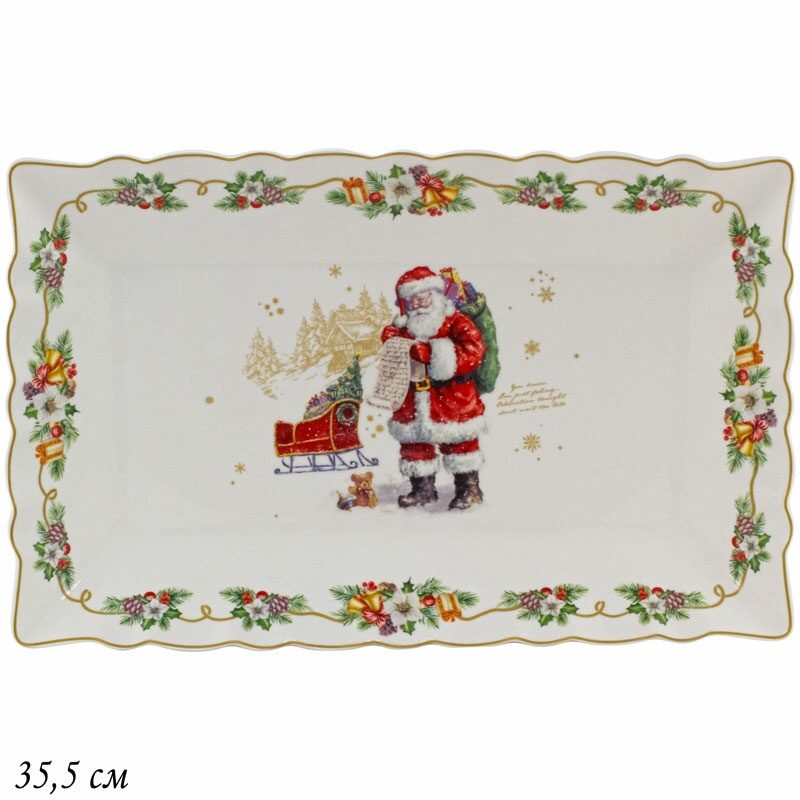 Lenardi 205-302 Прямоугольное блюдо 35,5см НОВЫЙ ГОД в под.уп.(х8)Фарфор