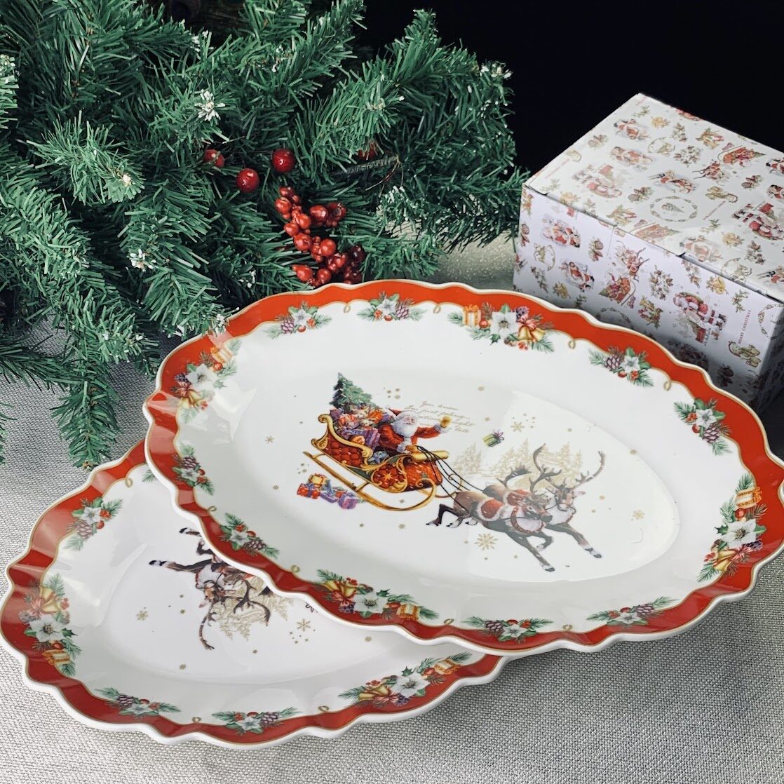 Lenardi 205-307 Набор из 2 овальных блюд 35,5см НОВЫЙ ГОД в под.уп.(х12)Фарфор