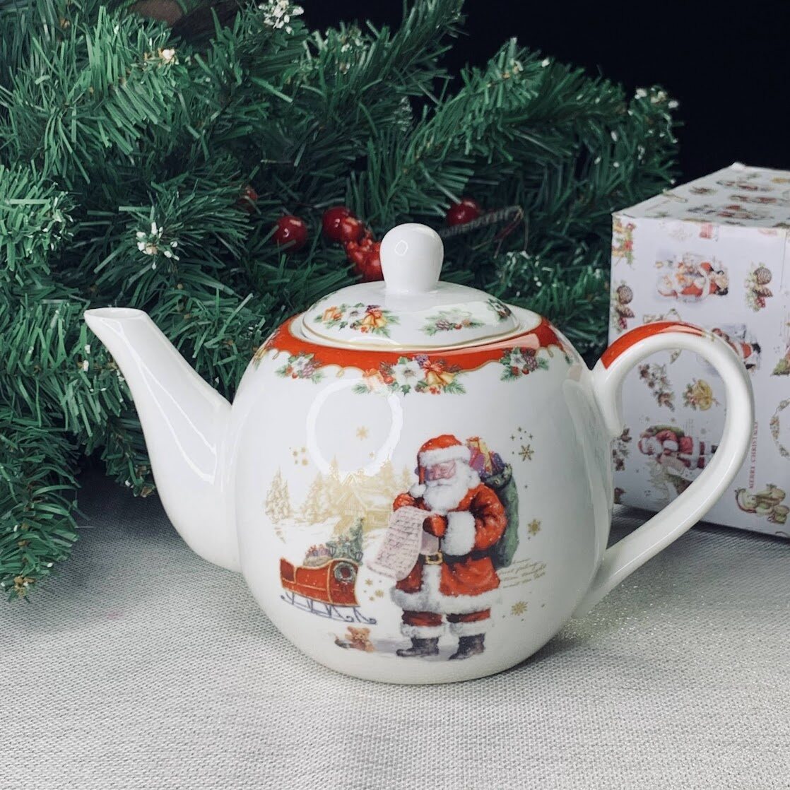 Lenardi 205-319 Чайник 850 мл НОВЫЙ ГОД в под.уп.(х24)Фарфор