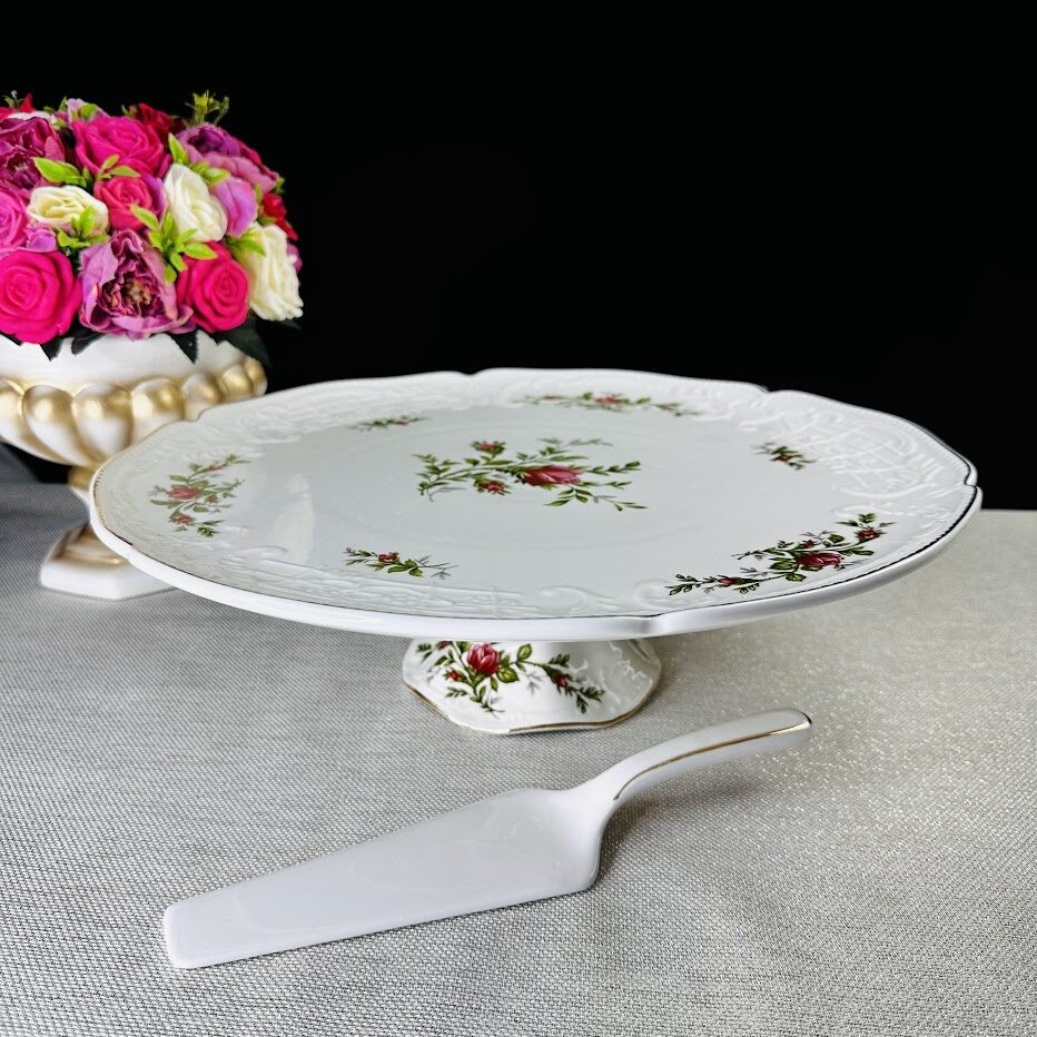 Коллекция ДОМИНИКА выполнена в стиле барокко и производится из белого фарфора c золотой каймой. Изделия украшены рельефным декором, изящно подчеркивающими благородство фарфора, узорные края выглядят элегантно и всегда в тренде посудной моды. В росписи фарфора излюбленным цветком считается роза, вот и мы решили расписать коллекцию английскими розами.