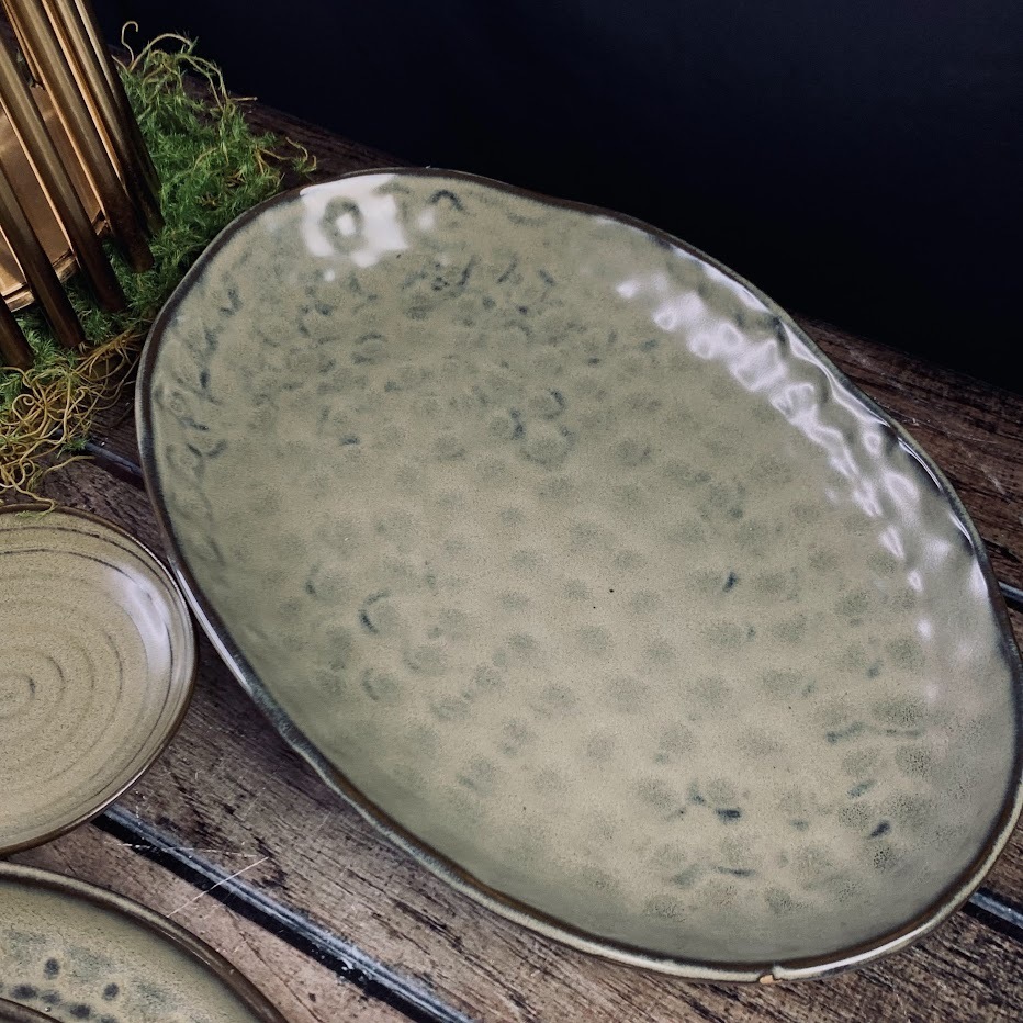 Коллекция Мистраль выполнена из фарфора в зеленовато коричневых тонах с неровной и объемной поверхностью, отводка коричневым ободком. Дно кружек, чашек, форм и салатников выполнено из грубой керамики, придавая посуде оригинальность и неповторимы стиль. Посуда прекрасно подходит как для ресторанов, так и для домашнего использования.