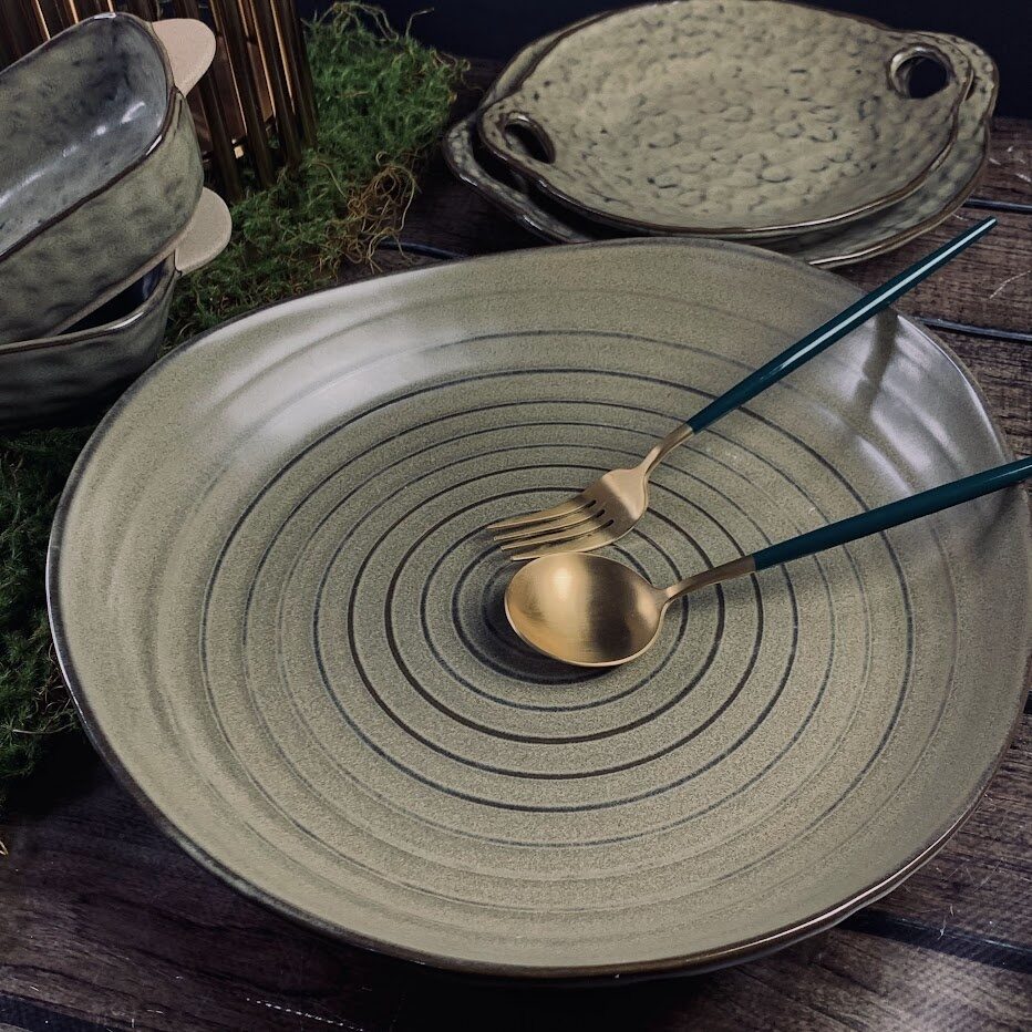 Коллекция Мистраль выполнена из фарфора в зеленовато коричневых тонах с неровной и объемной поверхностью, отводка коричневым ободком. Дно кружек, чашек, форм и салатников выполнено из грубой керамики, придавая посуде оригинальность и неповторимы стиль. Посуда прекрасно подходит как для ресторанов, так и для домашнего использования.