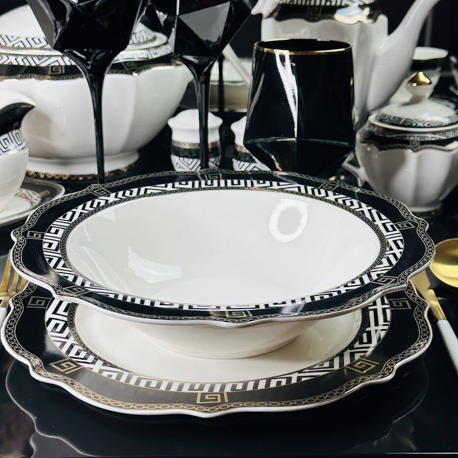 Материал: фарфор Не рекомендуется использовать в микроволновой печи и мыть в посудомоечной машине, по причине возможного повреждения золотого декоративного покрытия.