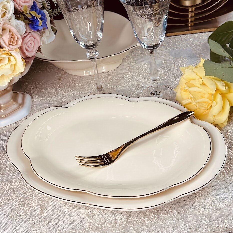 Коллекция МИРАЖ изготовлена из фарфора с глазурью цвета топленного молока. Изящная форма распустившегося цветка и отделка золотом, идеально смотрится в любом интерьере. Коллекция состоит из обеденного сервиза и предметов сервировки. Упаковано в подарочную коробку Материал: фарфор Не рекомендуется использовать в микроволновой печи и мыть в посудомоечной машине, по причине возможного повреждения золотого декоративного покрытия.