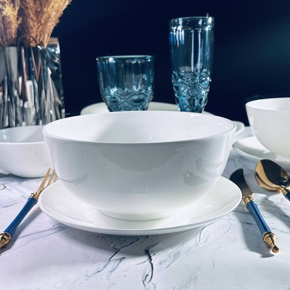 Коллекция ATLANT изготовлена из тонкого костяного фарфора. Белый костяной фарфор идеально подходит для повседневного использования, для сервировки праздничного стола, для ресторанов и отелей. Посуда легкая, легко моется, можно использовать в микроволновой печи и посудомоечной машине. Материал костяной фарфор