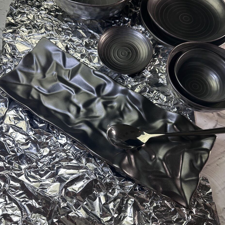 Коллекция ROCA выполнена из фарфора, покрытого черной матовой эмалью с отливом, с неровной и объемной поверхностью. Дно кружек, чашек, форм и салатников выполнено из грубой керамики, придавая посуде оригинальность и неповторимы стиль. Посуда прекрасно подходит как для ресторанов, так и для домашнего использования. Материал: фарфор Можно использовать в посудомоечной машине и микроволновой печи.