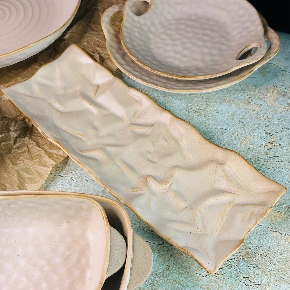 Коллекция ДЮНА выполнена из фарфора, покрытого матовой песочного цвета эмалью , с неровной и объемной поверхностью. Дно кружек, чашек, форм и салатников выполнено из грубой керамики, придавая посуде оригинальность и неповторимы стиль. Посуда прекрасно подходит как для ресторанов, так и для домашнего использования. Материал: фарфор Можно использовать в посудомоечной машине и микроволновой печи.