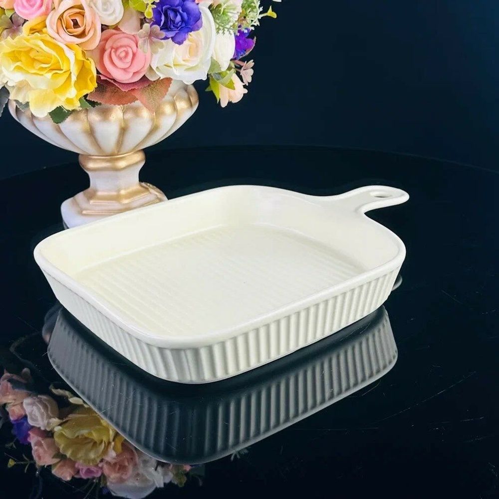 Жаропрочный фарфор - серия представлена в виде прямоугольных, квадратных, овальных и круглых блюд разного объема, круглых кастрюль и порционных формочек. Посуду можно использовать в духовке и микроволновой печи. Пища при этом сохраняет естественный вкус и аромат. Посуду можно мыть в посудомоечной машине, а качественная и прочная глазурь защищает блюда от царапин ножа и вилки. ВНИМАНИЕ! Температура приготовления пищи в посуде из фарфора не должна превышать t220C градусов. Категорически запрещается ставить посуду на конфорки электрической плиты или на открытое пламя. Посуду, в которой находились замороженные или охлажденные продукты, не следует сразу из холодильника помещать в горячую духовку.