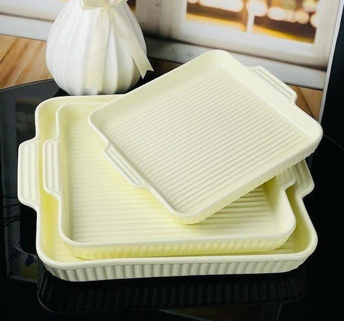 Жаропрочный фарфор - серия представлена в виде прямоугольных, квадратных, овальных и круглых блюд разного объема, круглых кастрюль и порционных формочек. Посуду можно использовать в духовке и микроволновой печи. Пища при этом сохраняет естественный вкус и аромат. Посуду можно мыть в посудомоечной машине, а качественная и прочная глазурь защищает блюда от царапин ножа и вилки. ВНИМАНИЕ! Температура приготовления пищи в посуде из фарфора не должна превышать t220C градусов. Категорически запрещается ставить посуду на конфорки электрической плиты или на открытое пламя. Посуду, в которой находились замороженные или охлажденные продукты, не следует сразу из холодильника помещать в горячую духовку.
