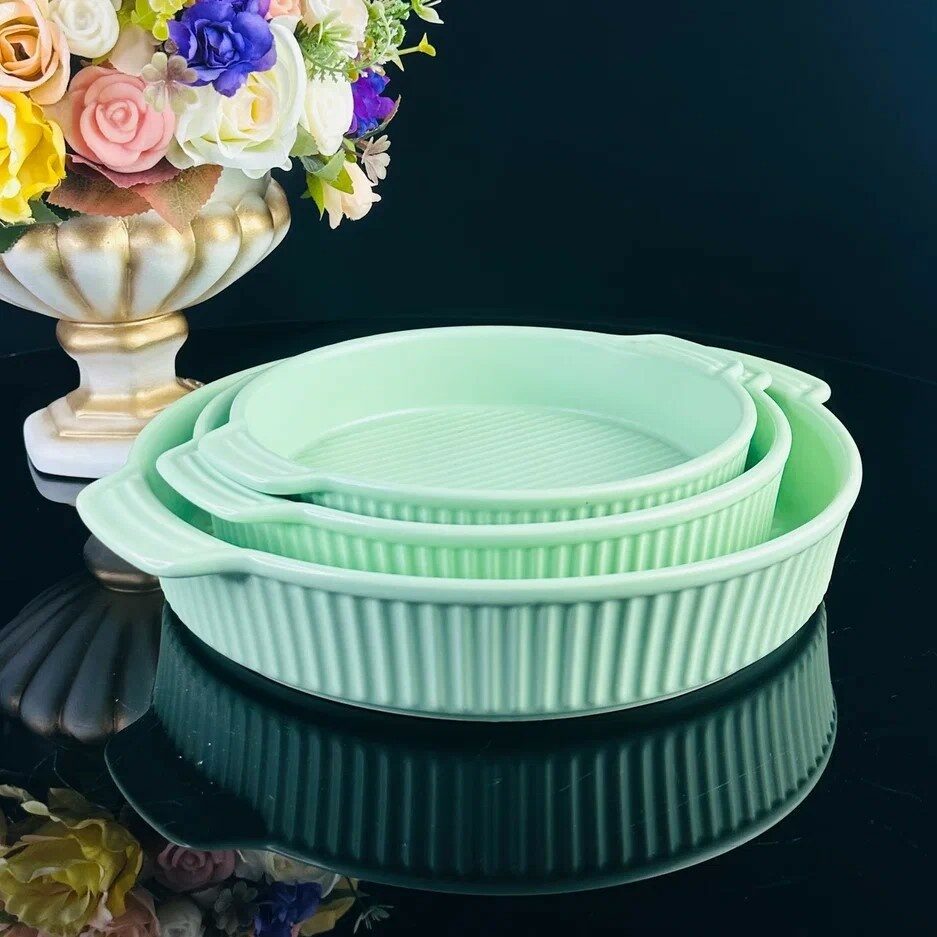 Жаропрочный фарфор - серия представлена в виде прямоугольных, квадратных, овальных и круглых блюд разного объема, круглых кастрюль и порционных формочек. Посуду можно использовать в духовке и микроволновой печи. Пища при этом сохраняет естественный вкус и аромат. Посуду можно мыть в посудомоечной машине, а качественная и прочная глазурь защищает блюда от царапин ножа и вилки. ВНИМАНИЕ! Температура приготовления пищи в посуде из фарфора не должна превышать t220C градусов. Категорически запрещается ставить посуду на конфорки электрической плиты или на открытое пламя. Посуду, в которой находились замороженные или охлажденные продукты, не следует сразу из холодильника помещать в горячую духовку.