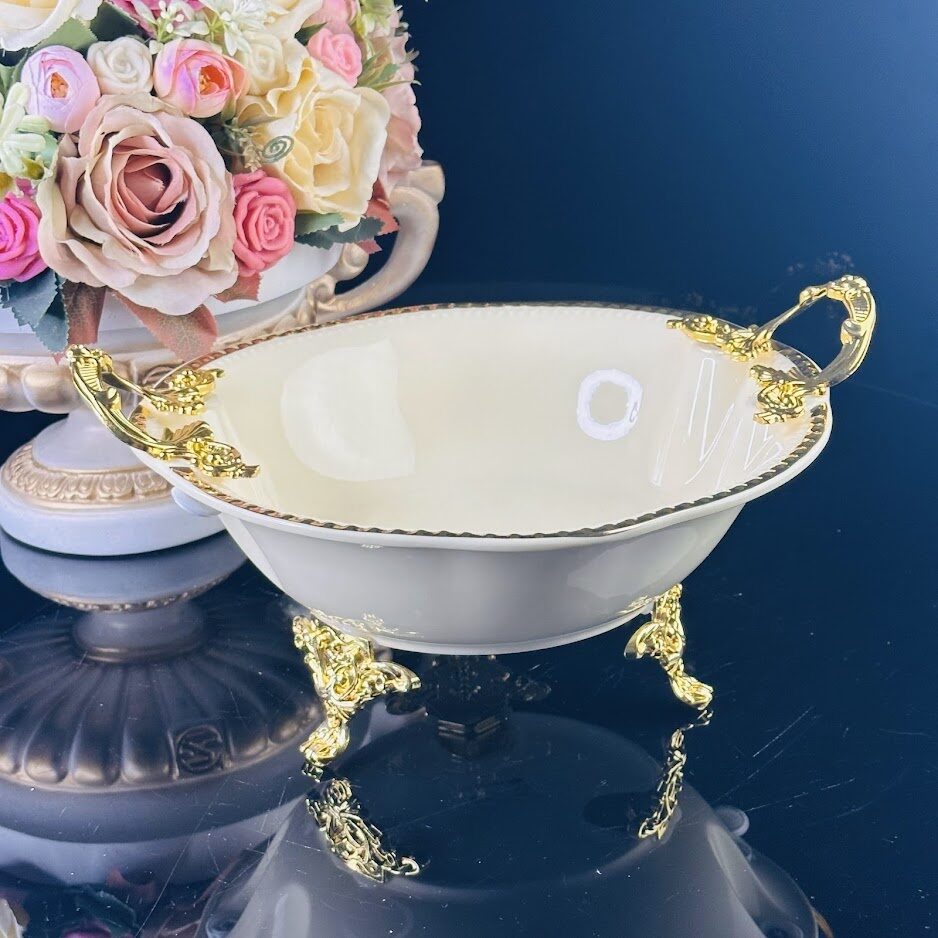 Lenardi 205-891 Глубокое блюдо 25см на ножках с ручками в под.уп.(х8)Фарфор