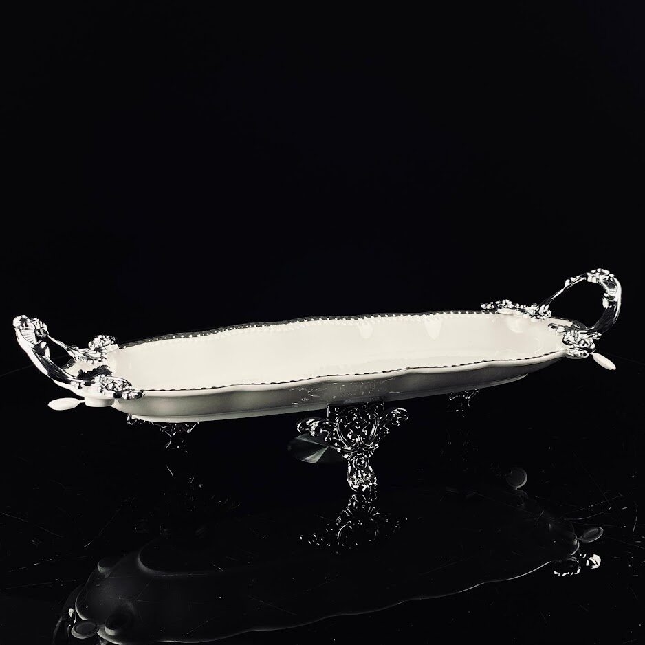 Lenardi 205-904 Блюдо 43см на ножках с ручками ATLANTIS в под.уп.(х8)Фарфор