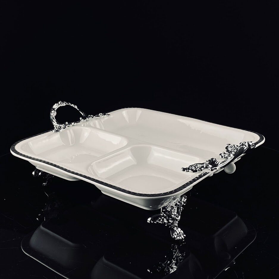 Lenardi 205-919 Менажница 33см на ножках с ручками ATLANTIS в под.уп.(х6)Фарфор