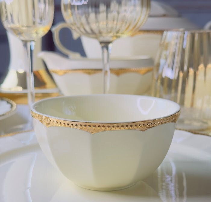 Изысканная коллекция посуды из фарфора ИМПЕРИАЛ ЗОЛОТО, выполнена в классическом дизайне, с глазурью цвета топленного молока. Золотой декор подчеркивает благородный цвет посуды. коллекция представлена сервизами, отдельными предметами, чайными наборами и сервизами. Материал: фарфор Не рекомендуется использовать в микроволновой печи и мыть в посудомоечной машине, по причине возможного повреждения золотого декоративного покрыти