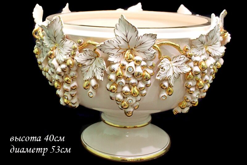 Lenardi 228-085 Фруктовница на ножке 53см. Виноград в под.уп.(х1) Фарфор
