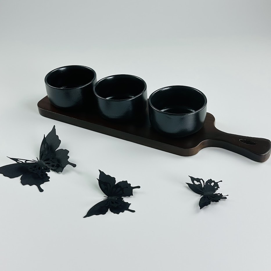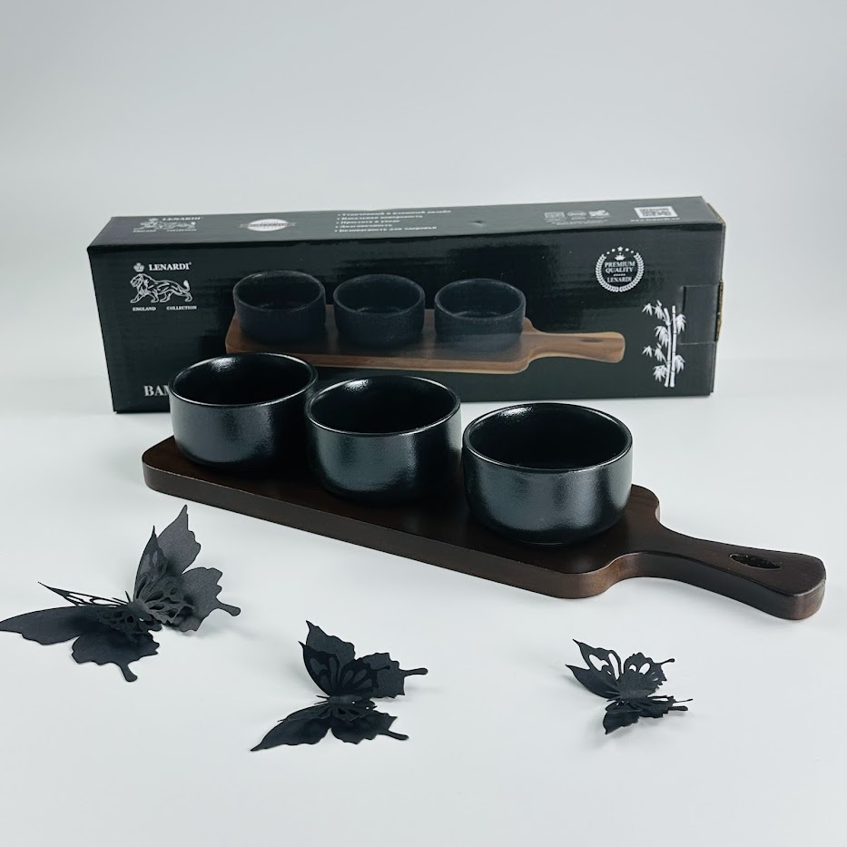 Коллекция BLACKWOOD выполнена из фарфора, покрытого черной глазурью. Сочетание матовых поверхностей с эффектной рельефной структурой, похожей на легкую шероховатость, делает эту коллекцию стильной и оригинальной. Часть предметов коллекции имеют элементы из натурального дерева.