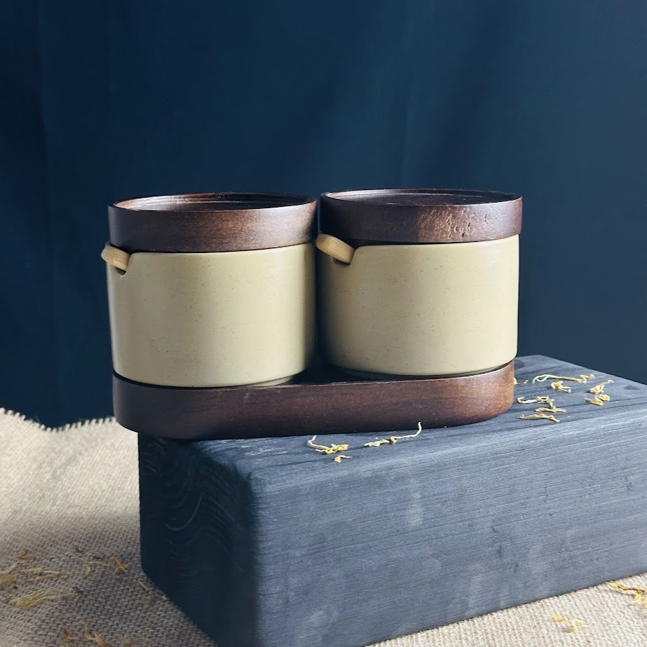 Lenardi 235-074 Набор из 2 баночек 9см с ложками на подставке в под.уп.(х24)